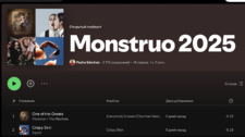 Плейлист называется Monstruо 2025 и открыт для общего доступа на Spotify. Тут и Росалия, и Майка Маковски, и ещё 16 испанских и зарубежных исполнителей.