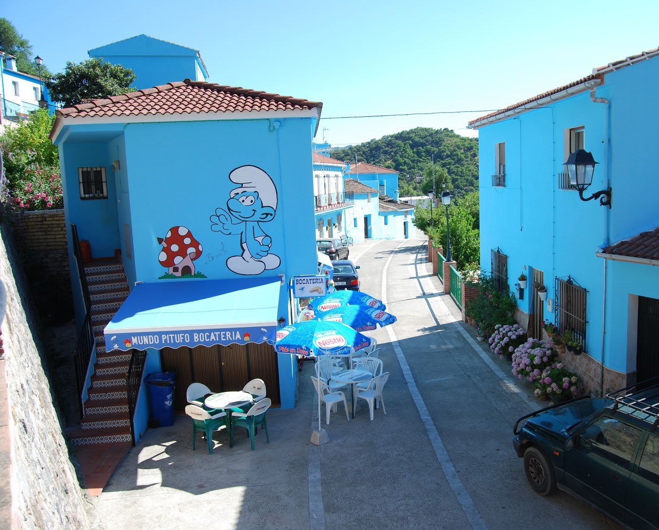 Жители этого андалусского муниципалитета, численность которых составляет менее 250 человек, в 2011 году покрасили фасады всех зданий в синий цвет, в том числе церковь и мэрию. Произошло это после того, как компания Sony Pictures выбрала Хускар местом проведения одного из промо-мероприятий по случаю премьеры фильма «Смурфики». Организаторы пообещали вновь покрасить дома в белый цвет, однако местные жители решили оставить их синими – «город Смурфиков» привлекал множество туристов. «Возникают некоторые жалобы, однако в большинстве своем горожане довольны», - говорит мэр Давид Фернандес.