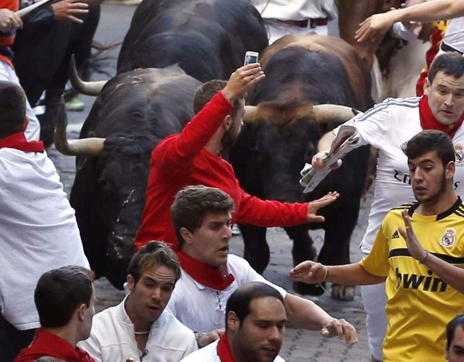 В этом году местные власти ужесточили правила поведения во время праздника Сан-Фермин, который обычно не обходится без пострадавших. Одной из таких мер стал запрет на фото- и видеосъемку для тех, кто убегает от быков. Полиция Памплоны хочет найти нарушителя и выписать ему штраф. Его размер не уточняется, однако за подобные нарушения полагается штраф от 751 до 1500 евро. В случае, если будет доказано, что провинившийся подверг опасности жизнь других убегающих, штраф может возрасти до 3 тыс. евро.