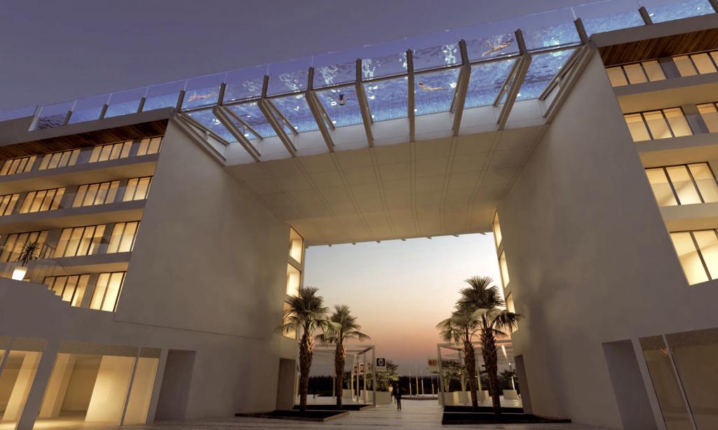 Руководство отеля, который принадлежит сети Meliá, отмечает, что это будет самый большой бассейн такого типа не только в Испании, но и во всей Европе. Конструкция представляет собой два бассейна длиной 48 метров каждый. Бассейны разместятся на крыше, соединяющей два здания гостиничного комплекса. Дно подвесного бассейна будет прозрачным, и из него можно будет наблюдать за происходящим внизу.